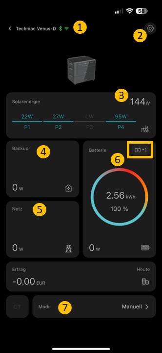 ❻ Akkustand in % und kWh, Anzahl erkannter Zusatzakkus