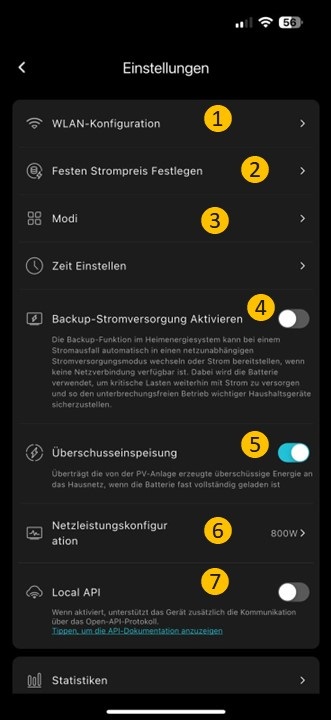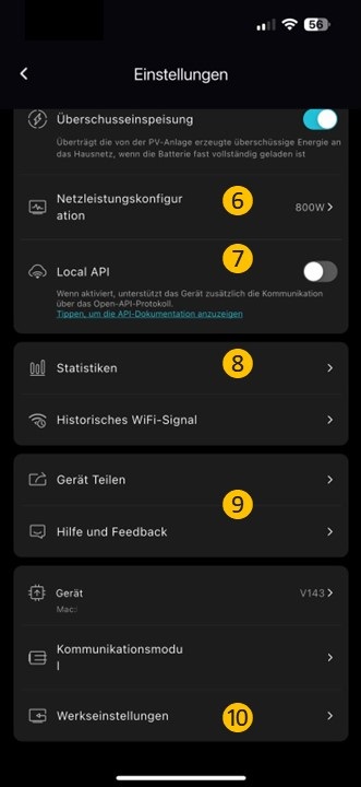 ❻ Konfiguration der maximalen Ausgangsleistung ins Netz (bei Balkonkraftwerken maximal 800W)