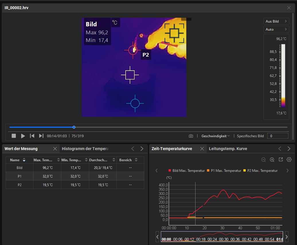 In meinem YouTube Video sieht man gut, wie sich die Markierungen für heißeste/kälteste Stelle dynamisch verändern.