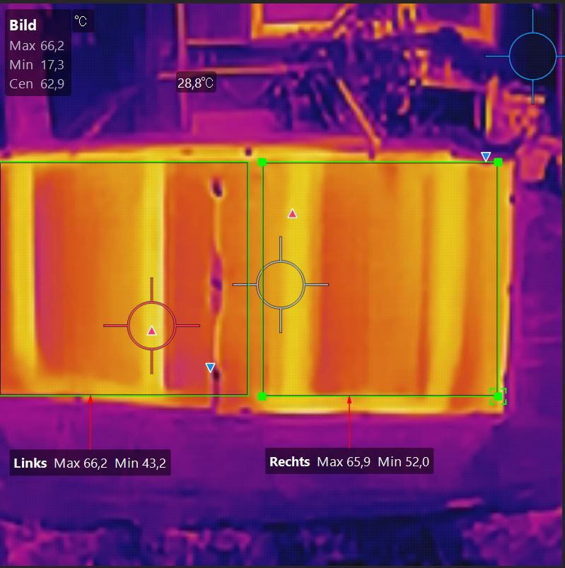 Gerade bei Solarmodulen oder warmen Oberflächen ist das sehr hilfreich, um schnell auffällige Bereiche zu erkennen.